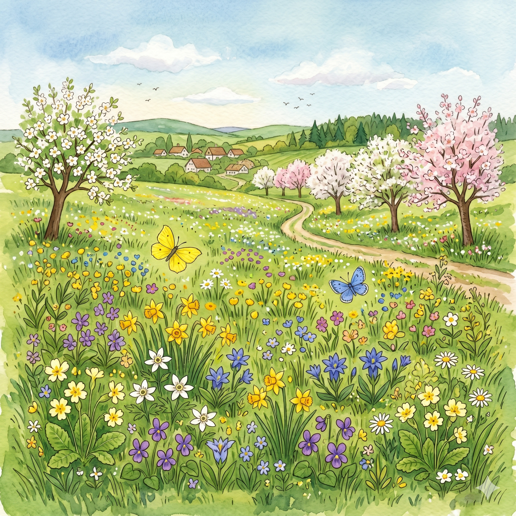 Ha körülnézel, mondd mit látsz!A táj színes, ez oly csodás.Zöld fű közt sok apró virág,tarkán pompázik a világ.Itt a tavasz a rét vidám,ezer színnel néz vissza rám.